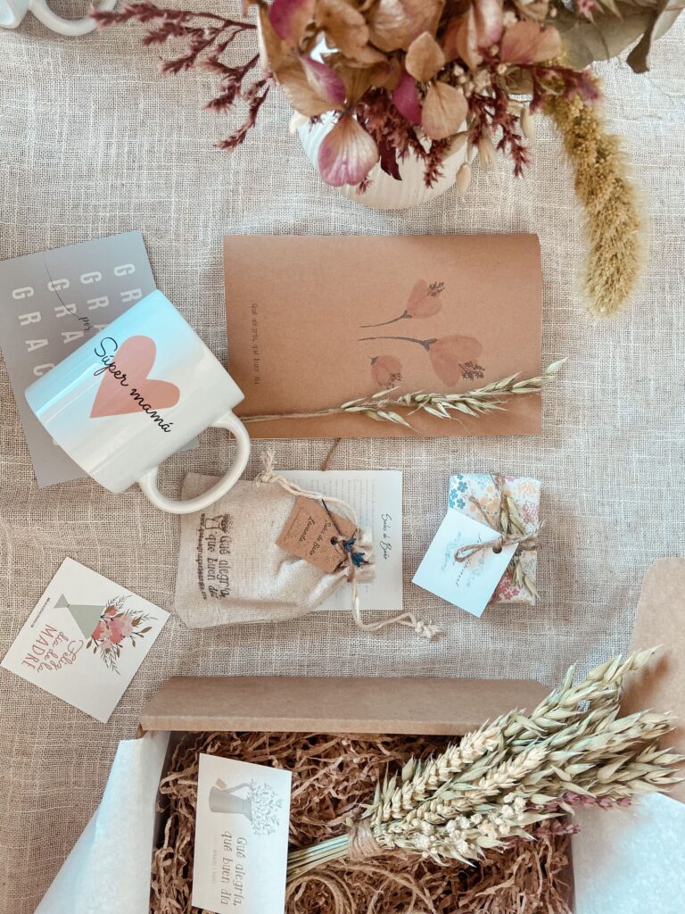 Si quieres regalarle algo más personalizado tienes nuestro pack regalo mamá, que puedes personalizar el mensaje de la taza, puedes incluir una fotografía en la libreta kraft. Tienes también el pack regalo mamá cajita que viene en una cajita de madera ideal para después reutilizarla para guardar cosas.